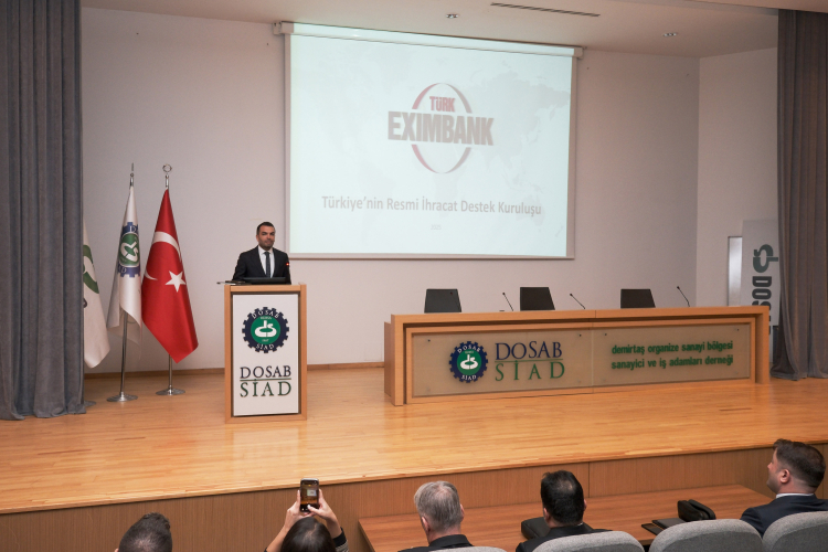 Bursa’da Demirtaş Organize Sanayi Bölgesi Sanayici ve İş İnsanları Derneği (DOSABSİAD) tarafından düzenlenen “İhracatın Finansmanında Türk Eximbank’ın Kredi ve Sigorta Destekleri” başlıklı bilgilendirme toplantısı, üyelerin yoğun katılımıyla DOSABSİAD Konferans Salonunda gerçekleştirildi.